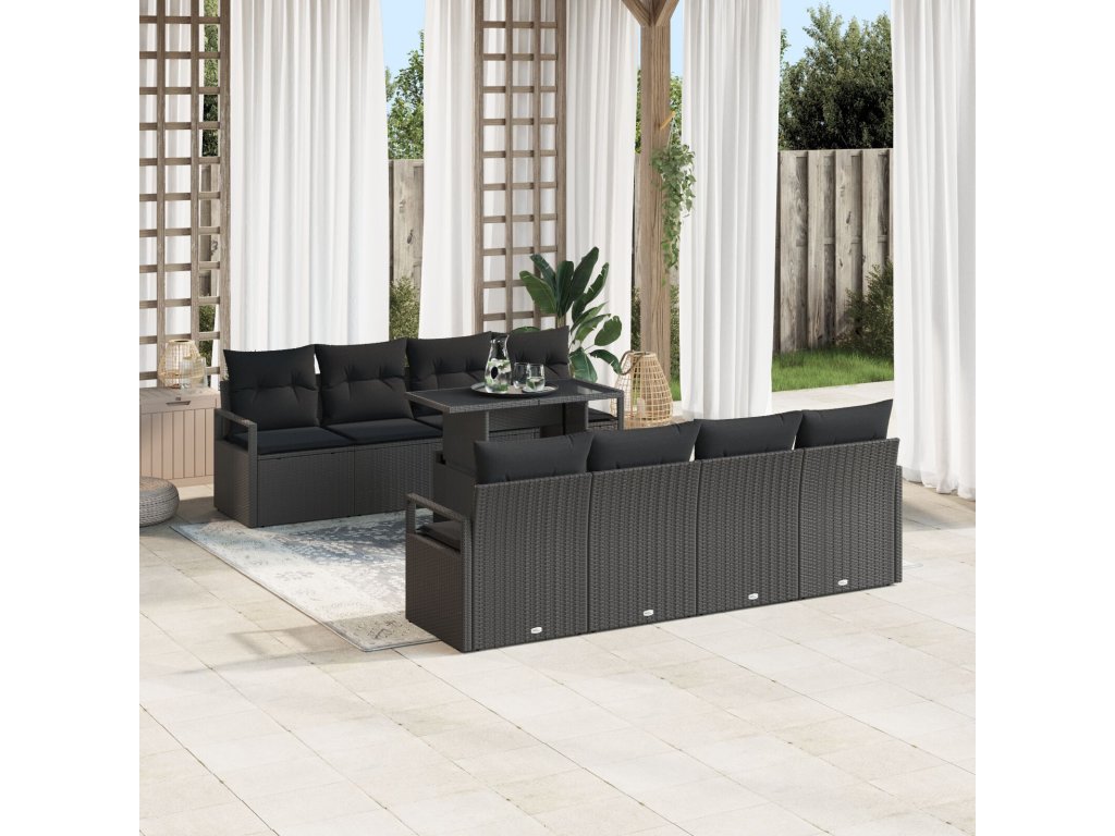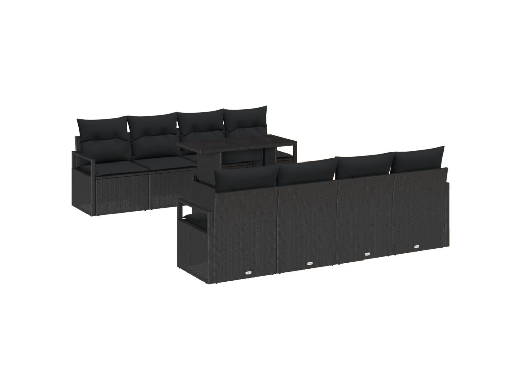 Sada zahradních pohovek s úložištěm 9 pcs Černá polyratan