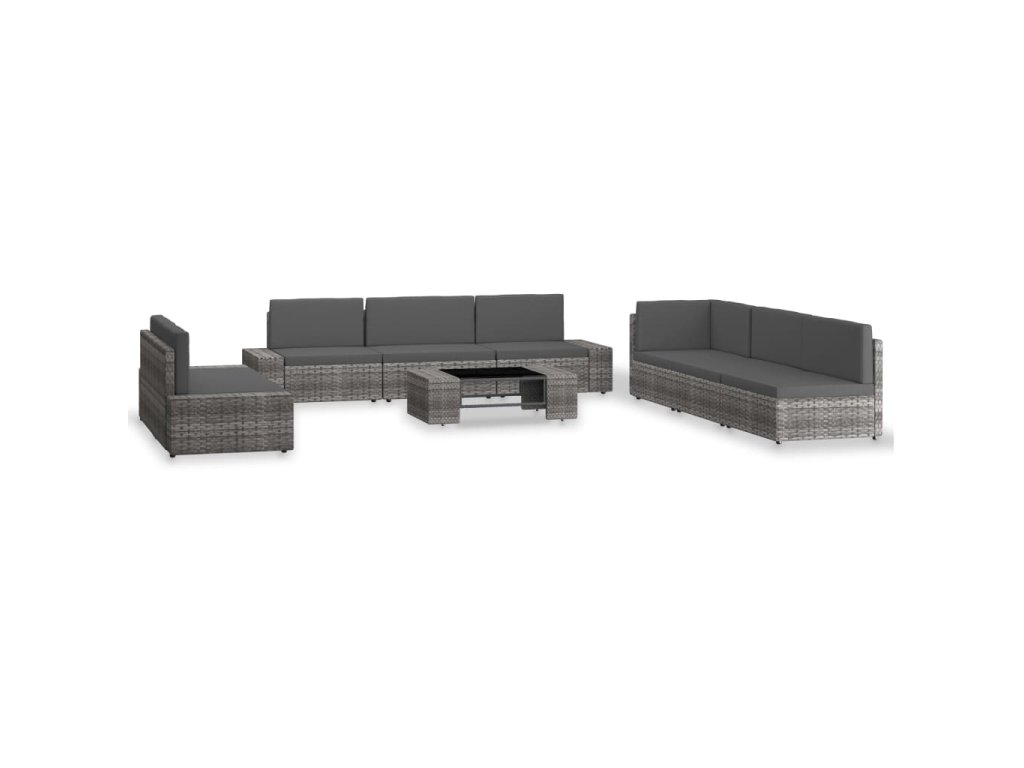Posezení z klimaticky odolného PE ratanu se snadno čistí, je odolné a vhodné pro každodenní použití. Pohovka má robustní práškově lakovaný ocelový rám, který má velmi dlouhou životnost. Vyjímatelné podušky na sedáky a opěradla jsou silně polstrované pro optimální pohodlí při sezení. Konferenční stolek s minimalistickým designem je ideální pro odkládání vašich knih, časopisů, čaje a čehokoliv, co potřebujete pro uklidňující chvíle relaxace. Sedací souprava také zaujme svým modulárním designem, který umožňuje všechny části soupravy uspořádat a přizpůsobit podle potřeby.