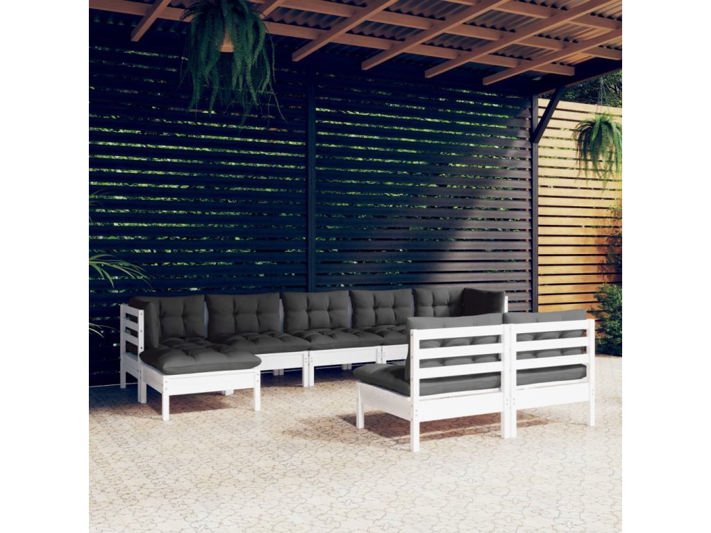 9dílná zahradní sedací souprava s poduškami bílá borovice