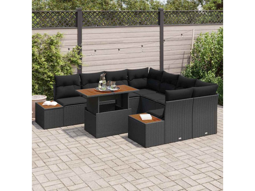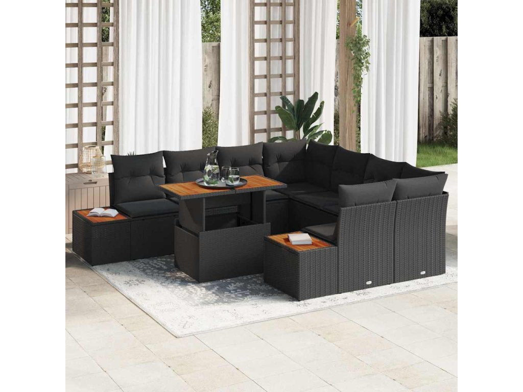 Sada zahradních pohovek s úložištěm 9 pcs Černá Poly ratan