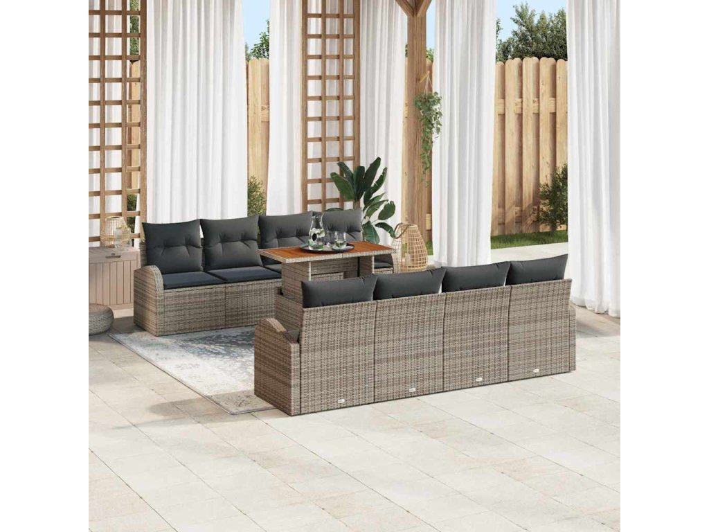 Sada zahradních pohovek s úložištěm 9 pcs Šedá Poly ratan