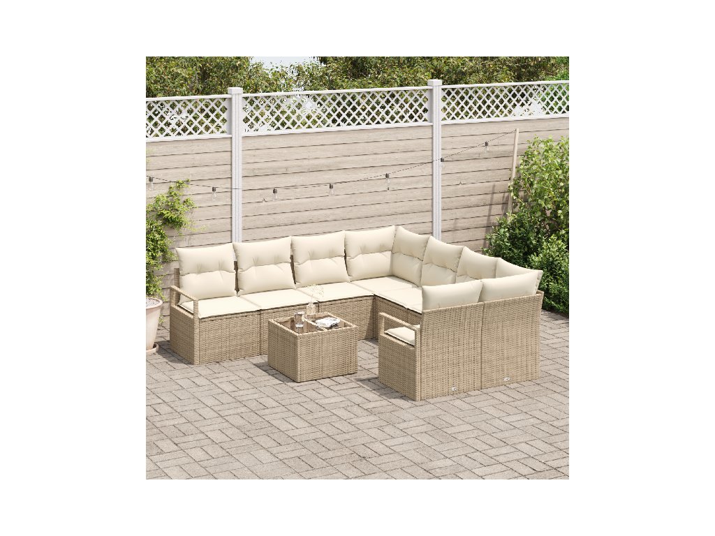 Set pohovek s polštářem 9 pcs Béžová a krémová polyratan