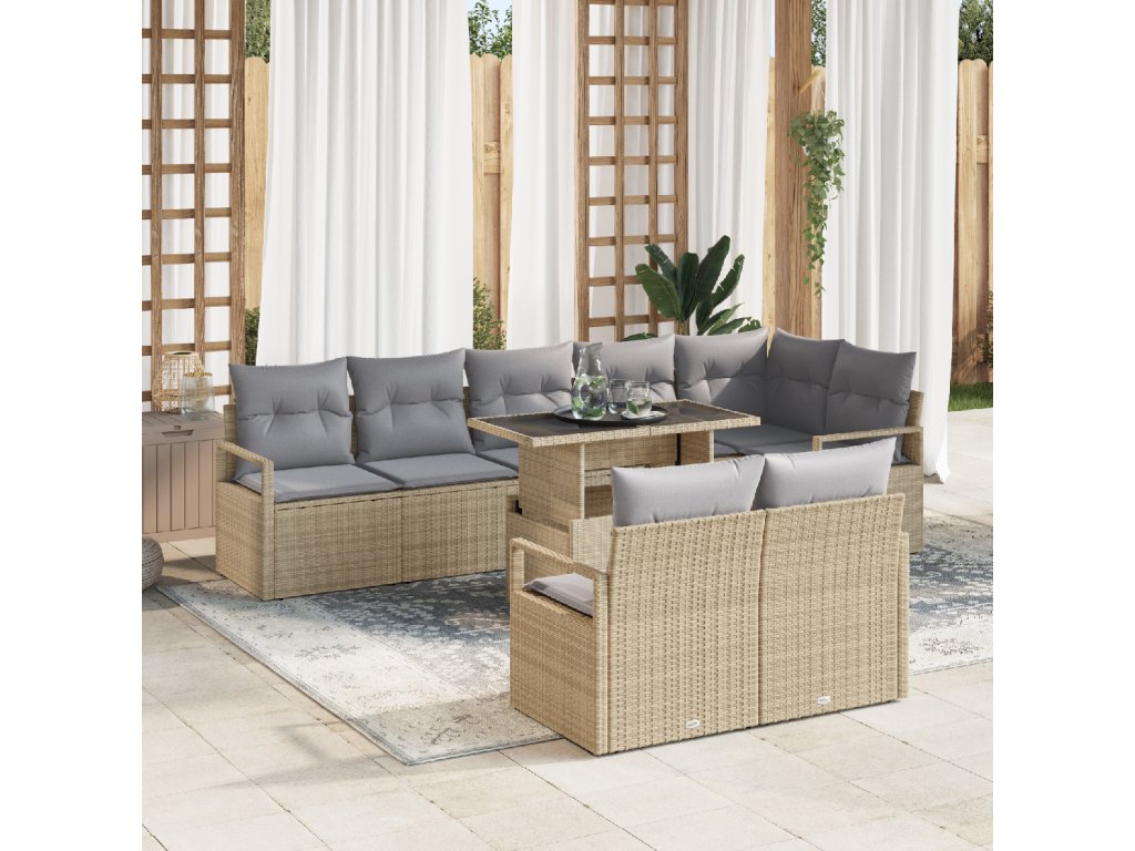Kvalitní materiály: Vyrobeno z odolného poly ratanu, tahle pohovka spojuje pohodlí a styl. Využití kvalitních materiálů zajišťuje, že souprava vydrží v náročných podmínkách, včetně voděodolnosti a nežloutnutí. Poly ratan navíc přidává elegantní vzhled do jakékoli zahrady nebo terasy. Komplexní komponenty: Tato sestava zahrnuje modulární sezení s ergonomickými opěrkami a čtvercovými opěrkami rukou, které zajišťují pohodlí a stabilitu. Každý prvek byl navržen s ohledem na komfort a užitečnost, což z ní činí ideální volbu pro ty, kdo chtějí stylový a praktický nábytek. Intuitivní funkce: Modulární uspořádání dává dostatek flexibility pro různé varianty sezení. Vestavěný úložný prostor pohodlně schovává polštáře a další věci, což podporuje uspořádané prostředí. Doba trvanlivosti je zajištěna vlastnostmi odolnými proti UV záření a konstrukcí, která snese venkovní použití. Víceúčelové použití: Perfektní pro jarní a letní venkovní zábavu, tato pohovka se přizpůsobí různým setkáním, ať už jde o rodinné oslavy nebo příjemné posezení. Elegantní vzhled a funkční design ji dělají vhodnou na balkony, terasy nebo do zahrady. Minimální údržba: Poly ratan nevyžaduje složitou údržbu, stačí ho zakrýt, když se nepoužívá. Polštáře doporučujeme schovat dovnitř při špatném počasí, aby si udržely kvalitu. Tyto komponenty nabízejí snadná řešení pro údržbu venkovního nábytku.- Barva: Béžová a světle šedá