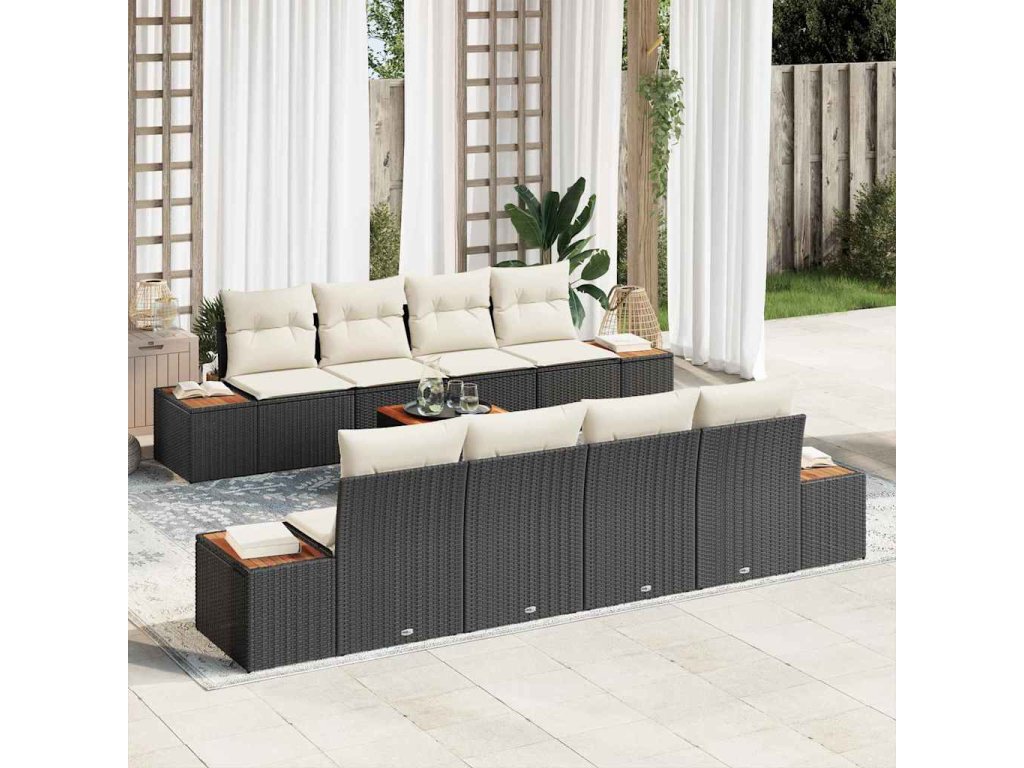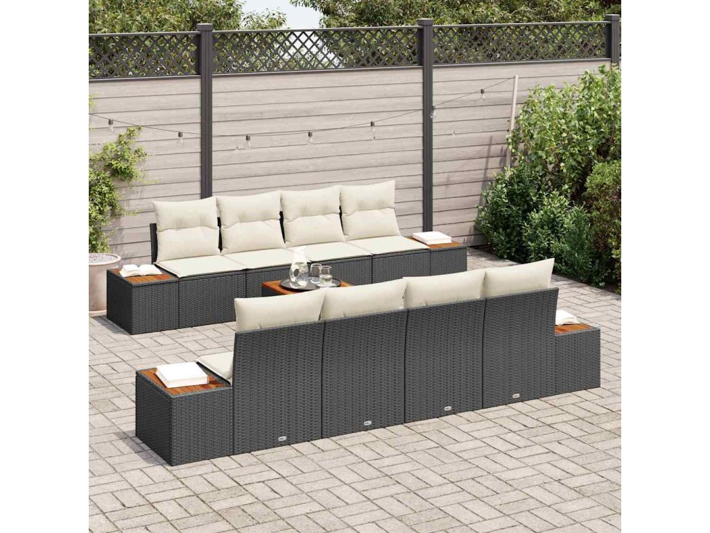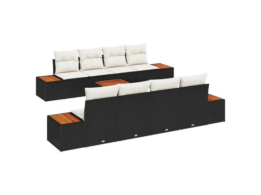 Sada zahradních pohovek s polštářem 9 pcs Černá Poly ratan