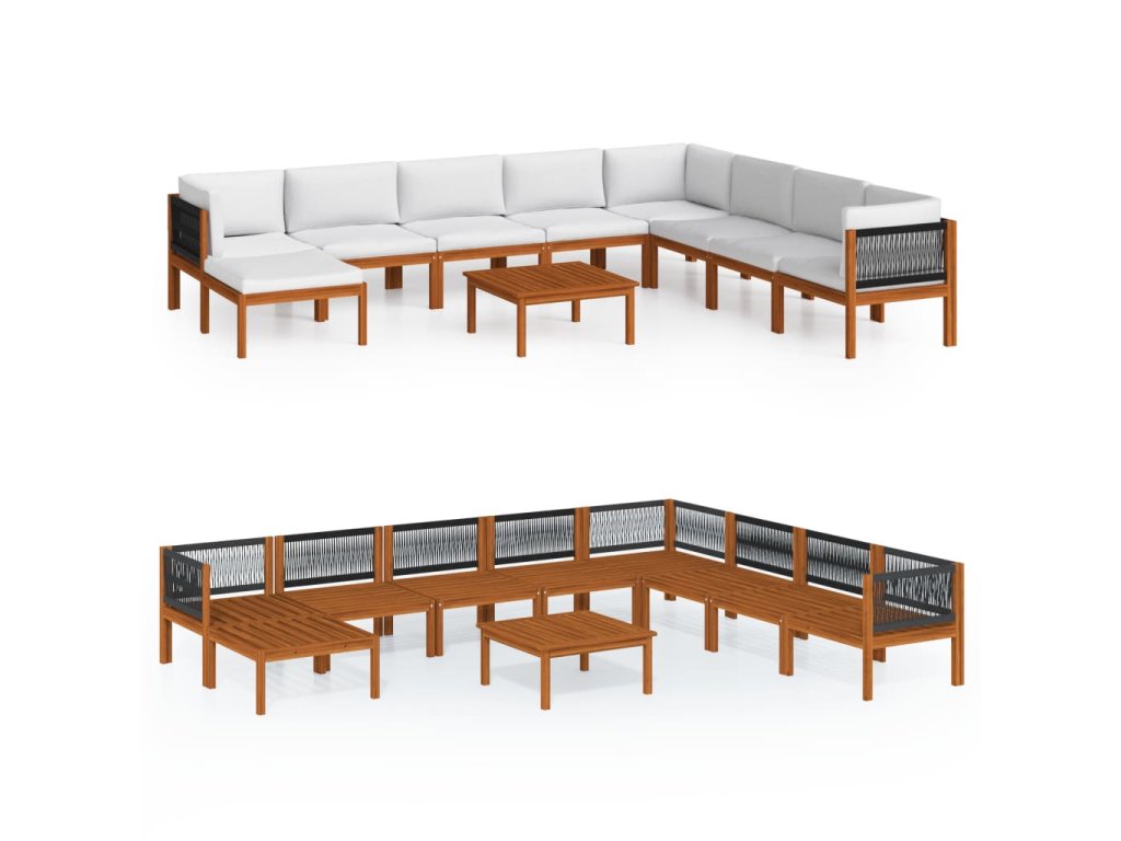 9dílná zahradní sedací souprava s polštáři krémové dřevo akácie a provaz