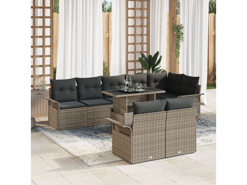 Sada zahradních pohovek s polštářem 9 pcs Šedá Poly ratan
