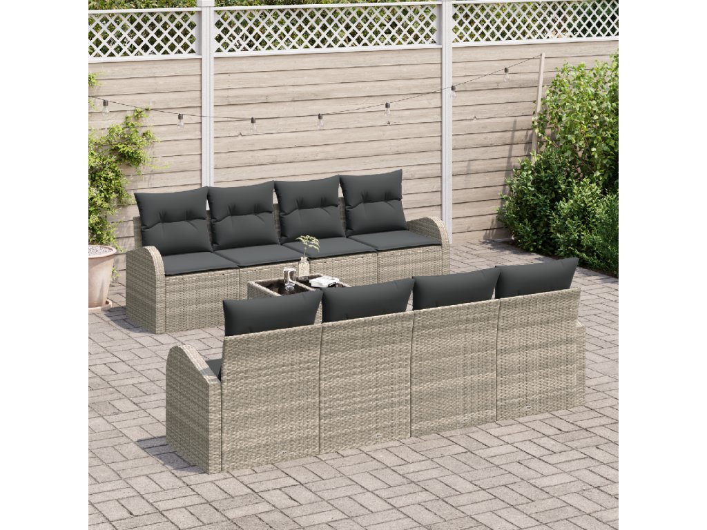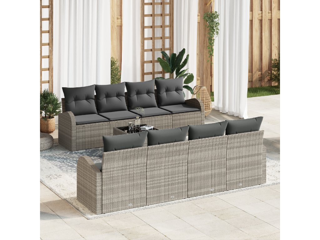 Odolné materiály Tahle konstrukce z poly ratanu a práškově lakované oceli zvládne venkovní podmínky a zároveň si udrží vzhled. Robustní rám zajišťuje spolehlivost, a bez problémů tak zvládne každodenní používání. Funkční design opěradla a opěrky rukou Zakřivené opěrky rukou a opěrka zad dávají skvělou podporu a zvyšují estetickou přitažlivost. Tyto prvky zajišťují pohodlné sezení a stylový vzhled, takže spojují pohodlí s moderním designem. Všestranné vlastnosti Modulární design, co se snadno přestaví, se přizpůsobí různým prostorům a příležitostem. Materiály odolné vůči UV záření zaručují, že si udrží kvalitu ve slunečním svitu – perfektní pro letní zahradní akce. Praktický povrch stolu S tvrzeným sklem dodává povrch stolu eleganci a praktičnost. Je to stabilní místo na nápoje nebo dekorace, které doplní sedací soupravu. Pokyny pro údržbu Údržba je EASY; stačí otřít vlhkým hadříkem a použít ochranný kryt, když ji nevyužíváte. Tyhle kroky zajistí dlouhou životnost vzhledu i funkčnosti.- Barva: Světle šedá