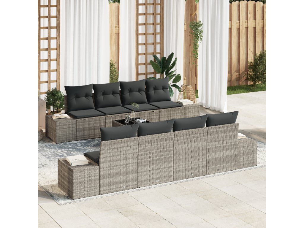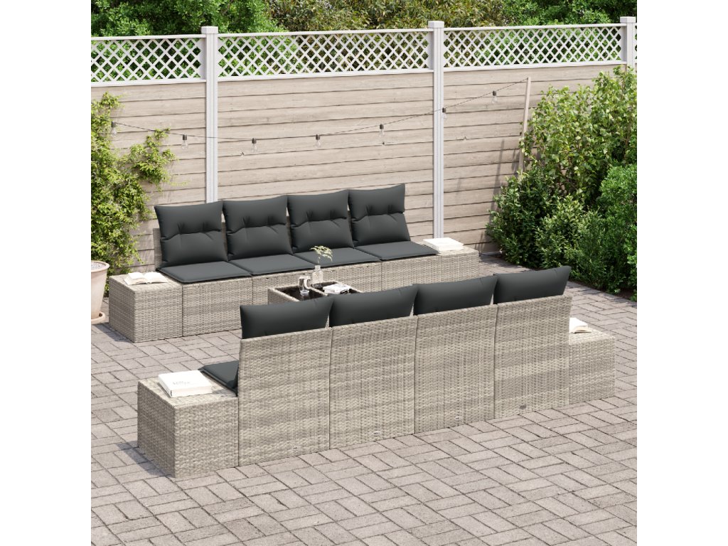 Sada zahradních pohovek s polštářem 7 pcs Světle šedá polyratan