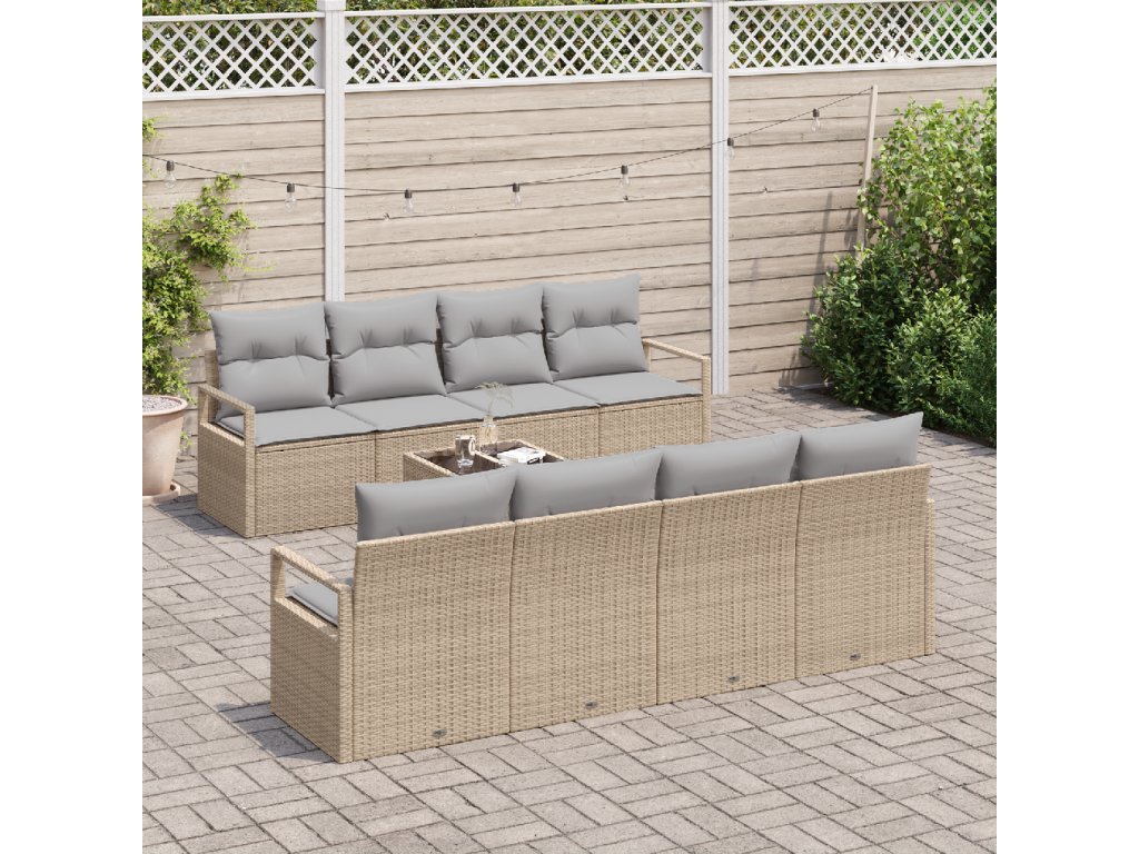 Sada zahradních pohovek 9 pcs Beige a šedá polyratan