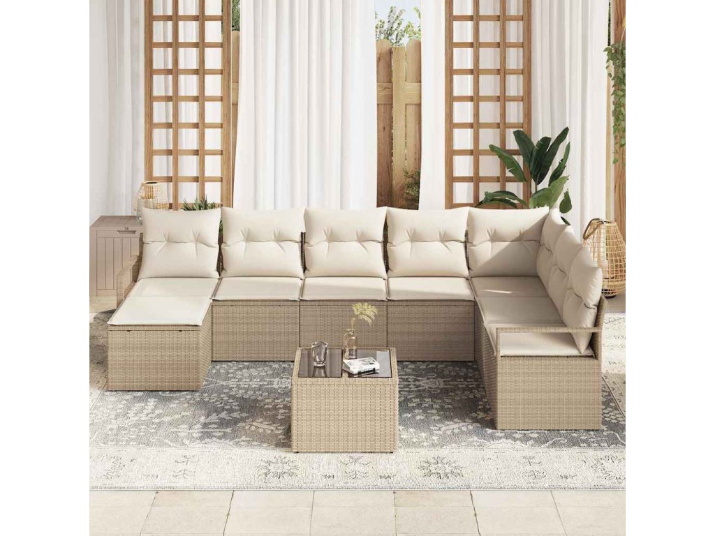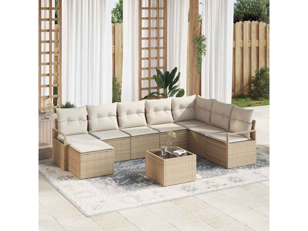 Set pohovek s polštářem 9 pcs Béžová a krémová polyratan