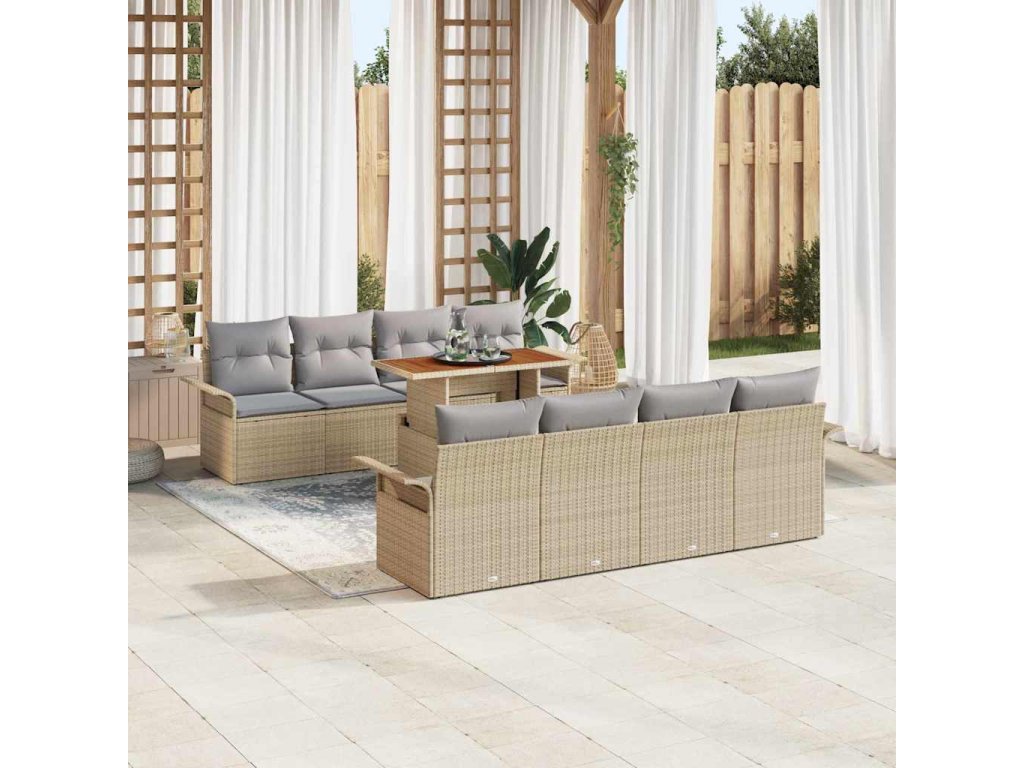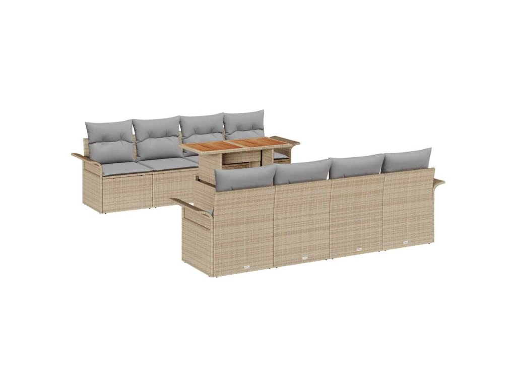 Sada zahradních pohovek s úložištěm 9 pcs Béžová Poly ratan