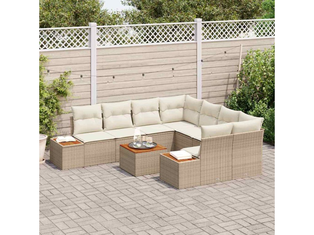 Sada zahradních pohovek s polštářem 9 pcs Béžová Poly ratan