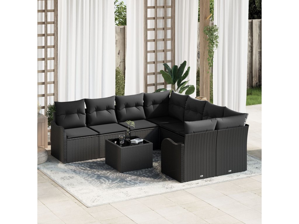 Sada zahradních pohovek s polštářem 9 pcs Černá polyratan