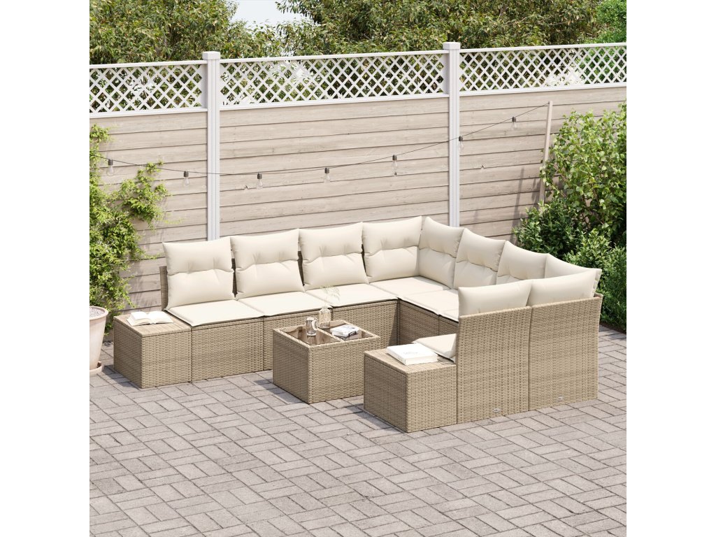 Sada zahradních pohovek s polštářem 9 pcs Béžová polyratan
