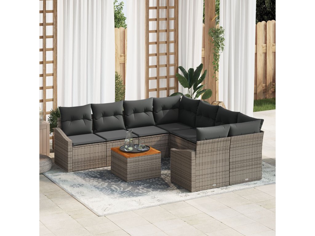 Sada zahradních pohovek s polštářem 9 pcs Šedá Poly ratan