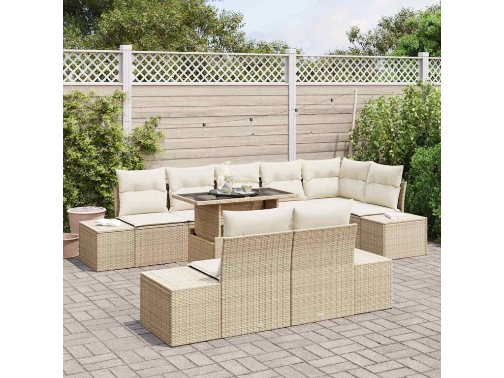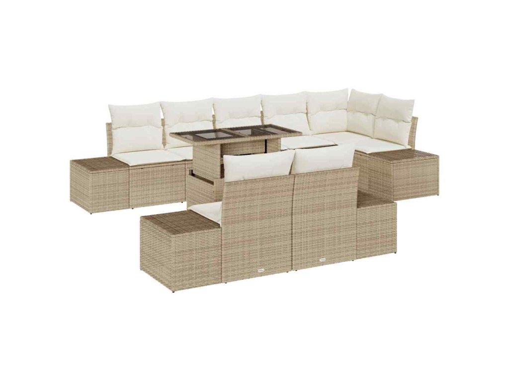 Sada zahradních pohovek s úložištěm 9 pcs Béžová Poly ratan