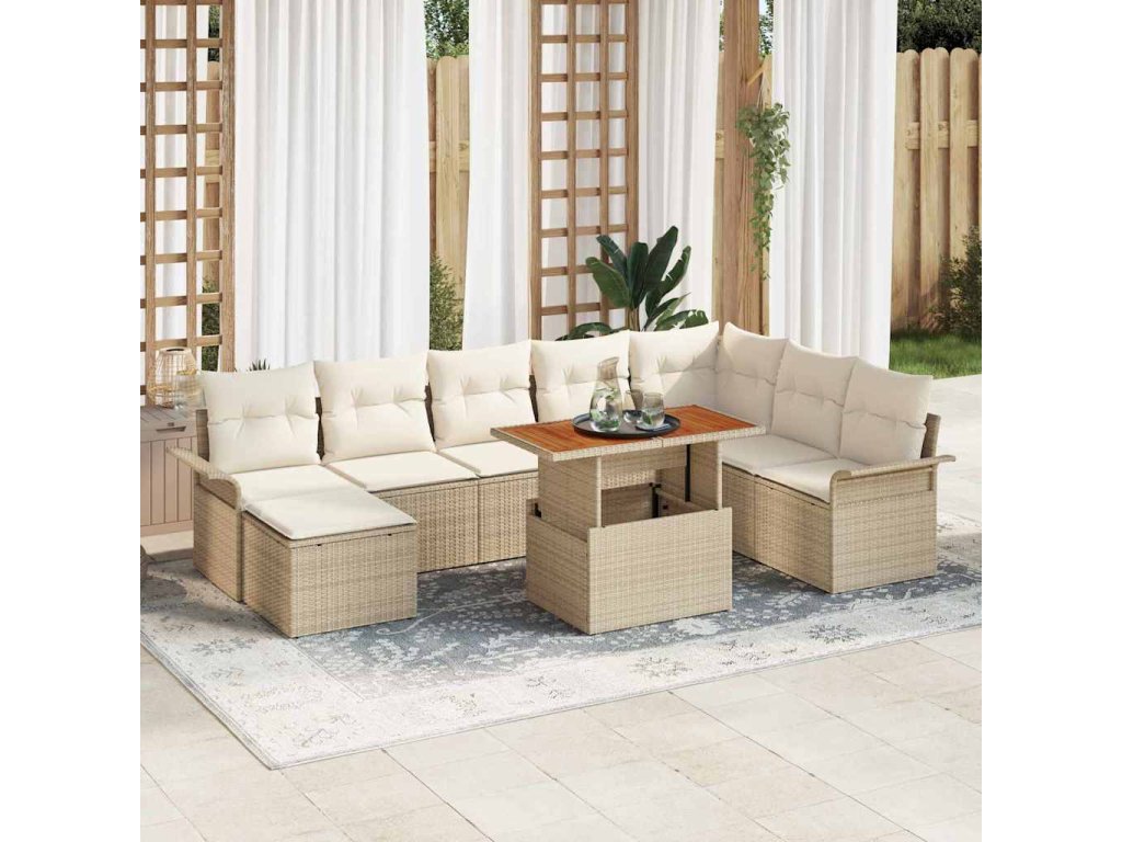 Sada zahradních pohovek s úložištěm 9 pcs Béžová Poly ratan