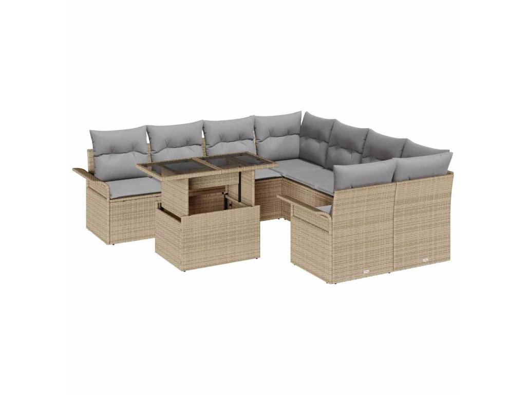 Sada zahradních pohovek s polštářem 9 pcs Béžová Poly Ratan