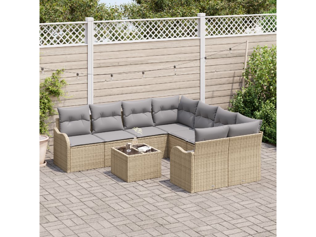 Sada zahradních pohovek s polštářem 9 pcs Béžová polyratan