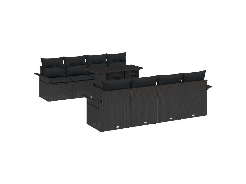 Sada zahradních pohovek s polštářem 9 pcs Černá polyratan