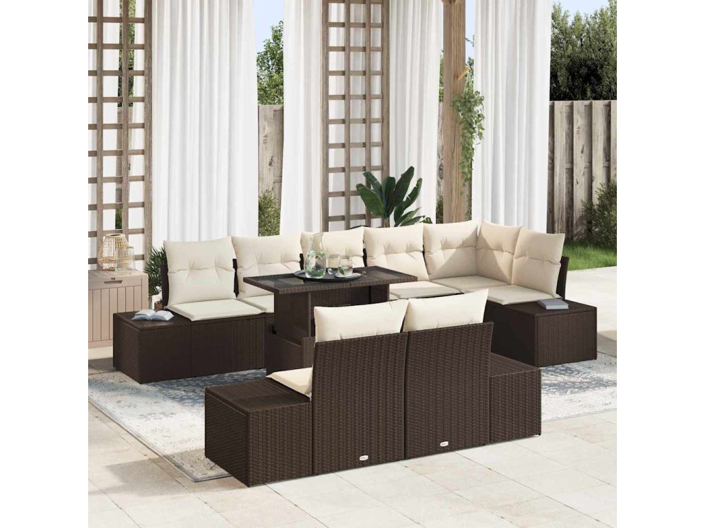 Sada zahradních pohovek s úložištěm 9 pcs Hnědá Poly ratan