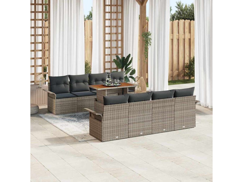 Tato 9dílná modulární ratanová jídelní souprava je super volba pro venkovní posezení – spojuje moderní design s praktičností. Je pro ty, co mají rádi jednoduchost a funkčnost, a dodá každé zahradě nebo terase elegantní vzhled. S tkaným designem a příjemným stylem je to dokonalé pro večírky nebo rodinné večeře. Modulární design umožňuje skvěle zapadnout do různých prostorů a udržet čistou a moderní atmosféru.