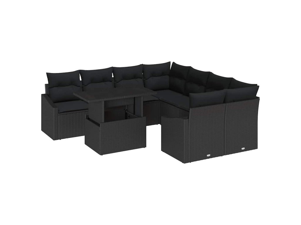 Sada zahradních pohovek s úložištěm 9 pcs Černá Poly ratan