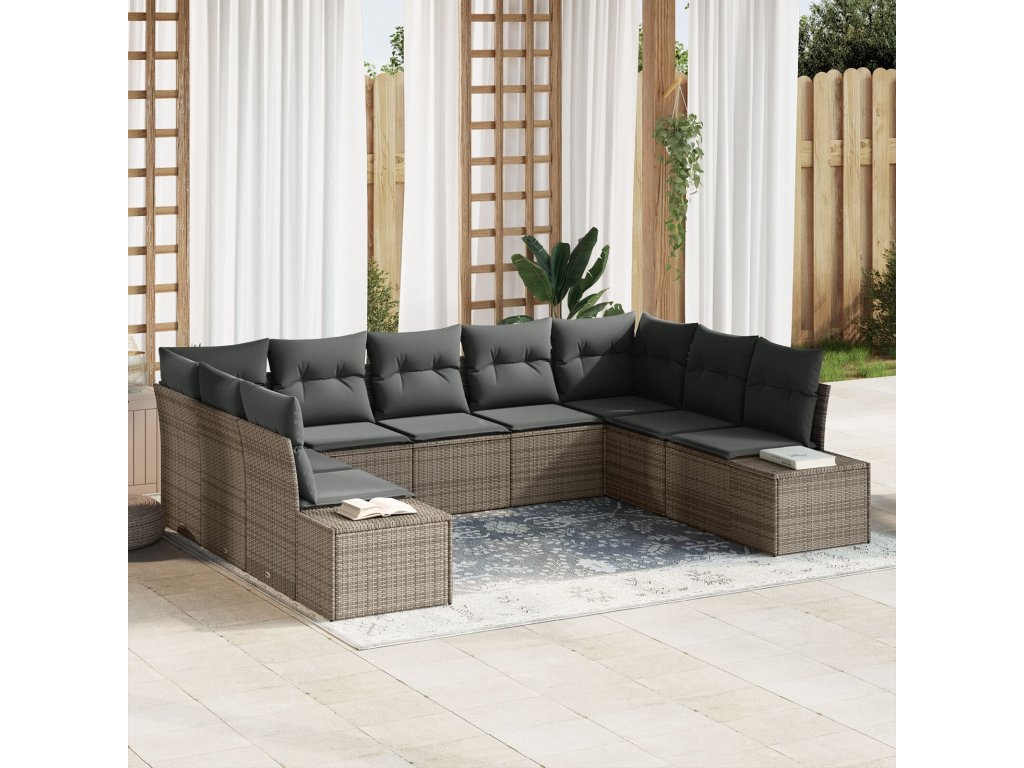 Sada zahradních pohovek s polštářem 9 pcs Šedá polyratan