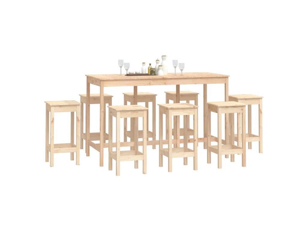 - Masivní borové dřevo: Barový set je vyroben z masivní borovice. Masivní borové dřevo je krásný přírodní materiál. Má rovnou kresbu a obsahuje suky, které materiálu dodávají jeho charakteristický, rustikální vzhled.