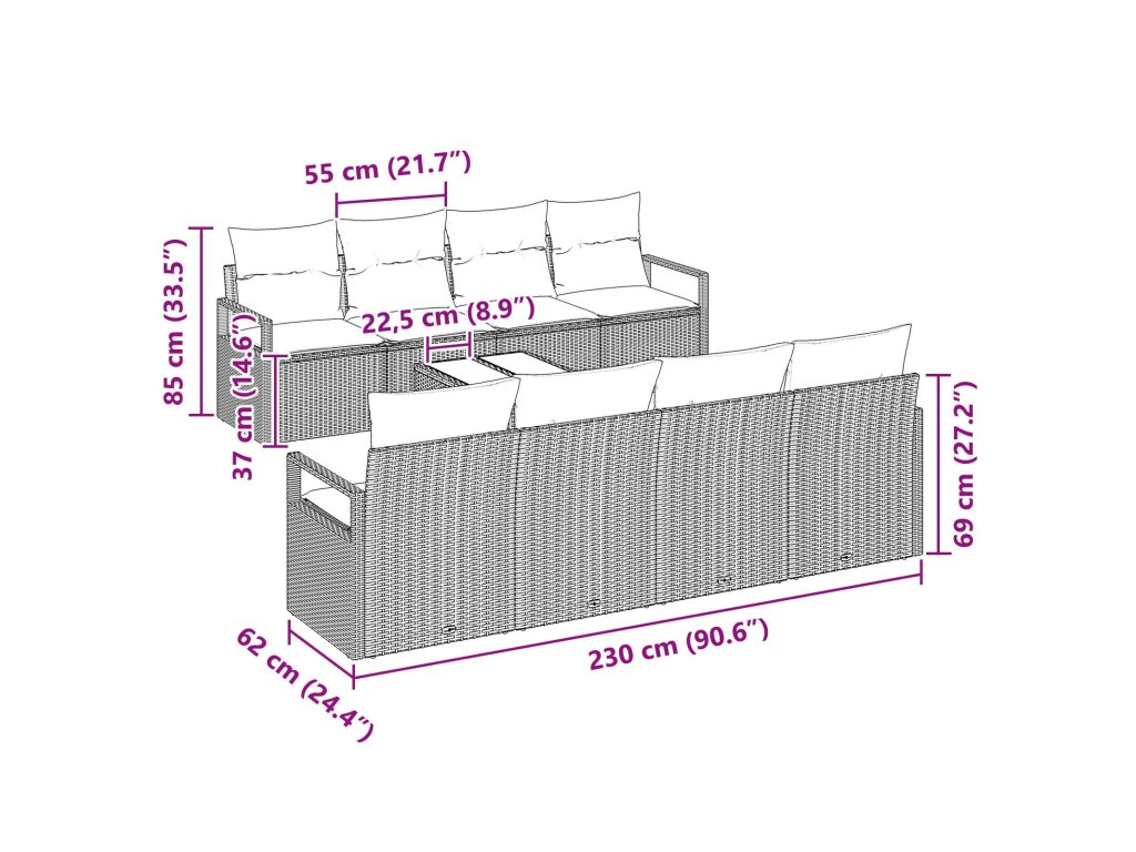 Tato sada zahradního nábytku je perfektní pro fanoušky venkova, co hledají kombinaci stylu a praktičnosti. Díky modernímu vzhledu a čistým liniím pohovka působí současně a nabízí jak funkčnost, tak eleganci. Tkaná textura je pohodlná na sezení, ať už na sluníčku nebo při soumraku, skvěle se hodí do zahrady a na terasu. Určená pro setkávání i osamělý relax, tahle sada vytváří úžasné místo, kde se setkává styl s odpočinkem a zanechává v každém silný dojem.