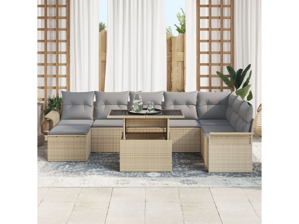 Sada zahradních pohovek s polštářem 9 pcs Béžová Poly ratan