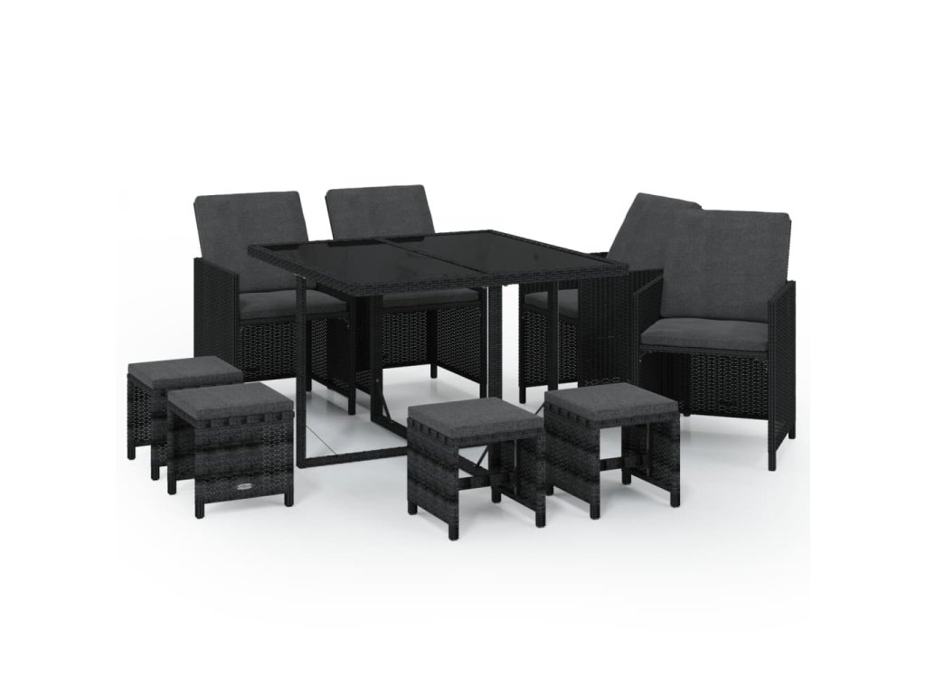9dílný zahradní jídelní set s poduškami polyratan černý