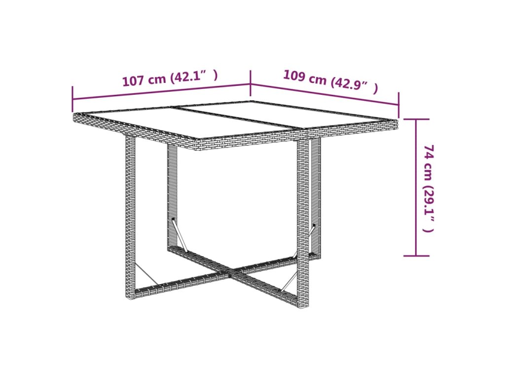 - Rozměry stolu: 109 x 107 x 74 cm (D x Š x V)