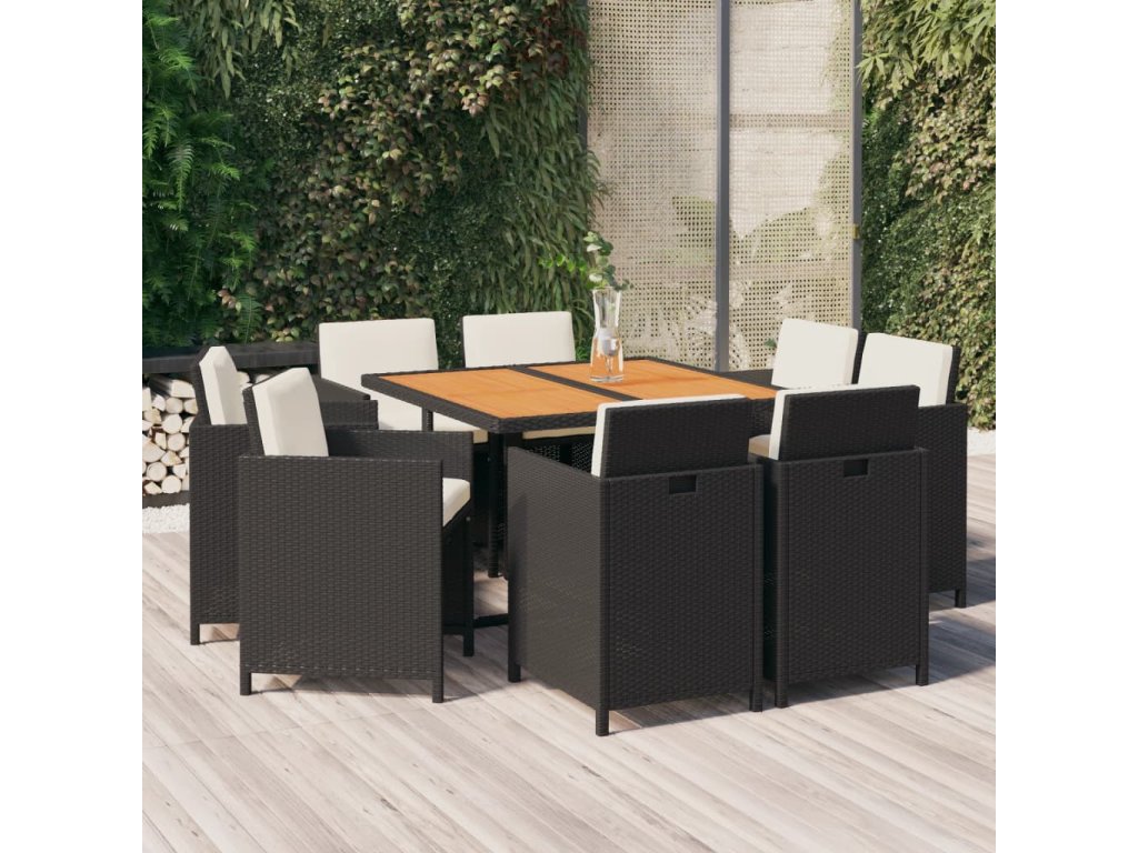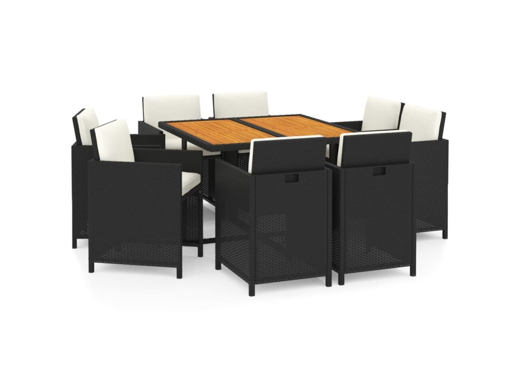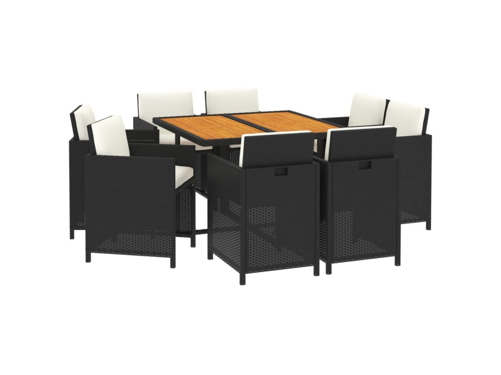 9dílný zahradní jídelní set s poduškami polyratan černý
