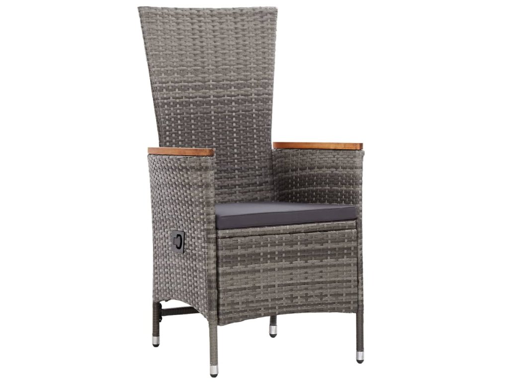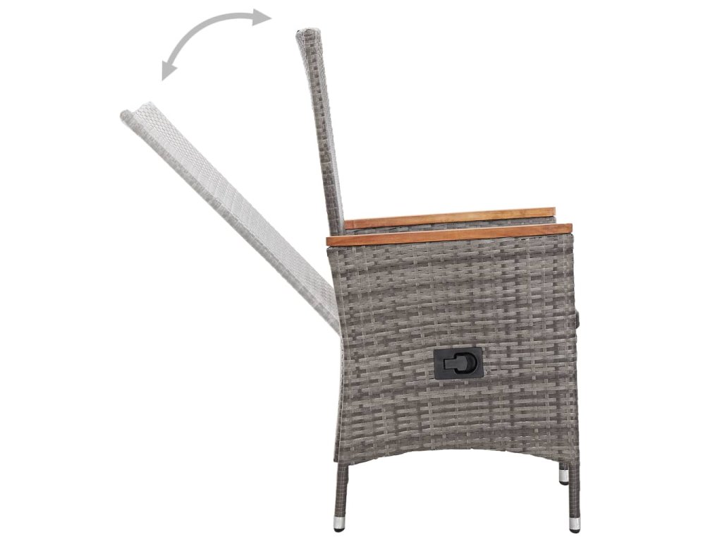 Ratanový jídelní set má elegantní, moderní design a bude skvělou volbou pro stolování na čerstvém vzduchu nebo relaxaci na zahradě. Je vyrobený z PE ratanu, který výborně vzdoruje vodě i povětrnostním vlivům, takže se snadno čistí, hodně toho vydrží a můžete ho klidně používat každý den. Stůl i židle mají práškově lakované ocelové rámy, a proto jsou pevné a robustní. Stolní deska a područky jsou naopak vyrobené z akáciového dřeva, což je tropické tvrdé dřevo, které vyniká svým rustikálním šarmem. Dvě z osmi dodaných židlí jsou polohovací, nabízí tedy možnost různého sklonu opěradla. Stačí stisknout boční tlačítko. Jídelní sestava má lehkou konstrukci, všechny díly se tudíž dají bez námahy přesouvat.