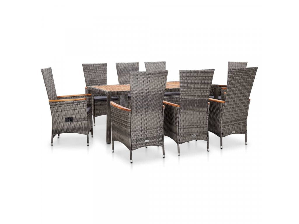 9dílný zahradní jídelní set s poduškami polyratan šedý