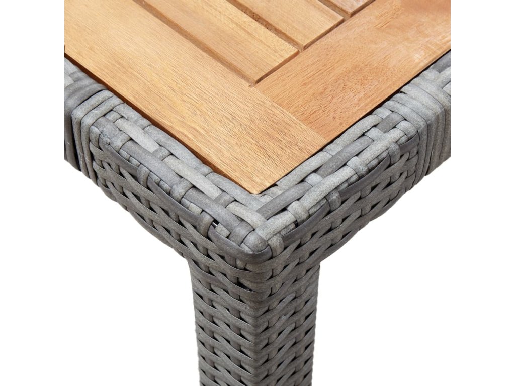 - Materiál: PE ratan, masivní akáciové dřevo, práškově lakovaná ocel