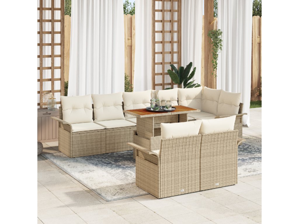 Materiál poly ratan: Tato souprava má konstrukci z poly ratanu, což dodává elegantní vzhled každé zahradě a zajišťuje odolnost. Lehký a silný rám je snadno přemístitelný a přizpůsobitelný dle potřeb. Součásti v ceně: Sada je kompletní s opěrkami, zakřivenými rukama a pohodlnými polštáři pro příjemné sezení. Každý prvek zvyšuje komfort, takže váš venkovní prostor se stane místem relaxace. Unikátní funkce: Sada obsahuje nastavitelný stůl, co umožňuje snadné přechody mezi kávovým a jídelním stolem. To přináší flexibilitu do jakéhokoli venkovního prostředí a UV-odolné materiály chrání před slunečním vyblednutím. Optimální využití: Skvělá pro terasy, zahrady a další venkovní prostory, modulární design umožňuje mnoho různých uspořádání. Ať už pořádáte večírek nebo si užíváte rodinný čas, přizpůsobí se každé příležitosti. Péče a údržba: Pro dlouhou životnost soupravy ji zakryjte, když ji nepoužíváte, čímž ji chráníte před povětrnostními vlivy. Pravidelně ji otírejte suchým hadrem, aby dobře vypadala a fungovala roky.- Barva: Béžová a krémová