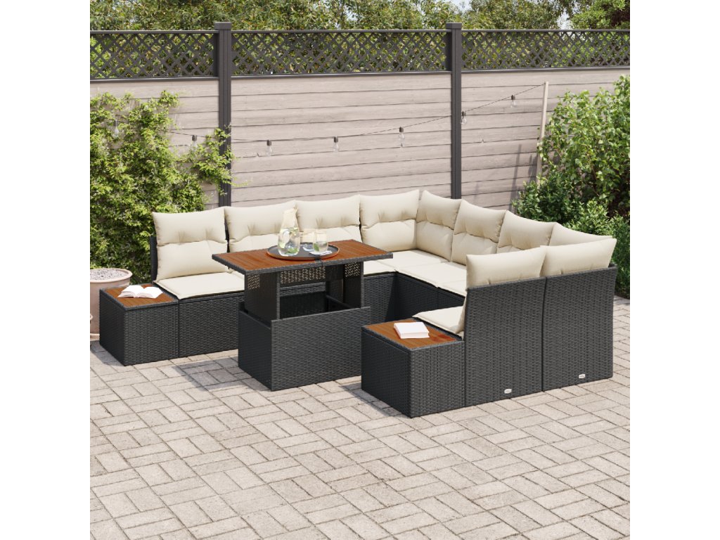 Zahradní jídelní souprava s polštářem 9 pcs Černá a béžová