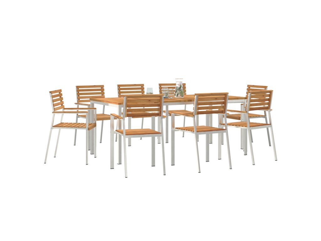Pevný rám z nerezové oceli - Set je vyrobený pro odolnost, rám z nerezové oceli zajišťuje pevnost proti počasí. Moderní design dodává styl vaší zahradě. Pohodlné opěrky a opěradlo - S plochými opěrkami a dobře navrženým opěrákem, což je ideální mix elegance a komfortu. Hladké opěrky jsou příjemný detail a umělecké opěradlo dodává kouzlo. Pevný lamelový rošt - Set má robustní lamelový rošt pro venkovní použití. Umožňuje vzduchu procházet a rychle schne, zatímco lamely jsou dost odolné na běžné opotřebení. Matný, odolný povrch - Matný povrch vypadá super a není přehnaný. Povrchy jsou odolné vůči skvrnám, takže údržba je snadná a nábytek zůstává v dobrém stavu. Snadné pokyny k údržbě - Udržujte nábytek v super stavu použitím voděodolného krytu, když ho skladujete. Pravidelně ho čistěte šetrně a ukládejte na suchém místě, abyste si ho užili déle.- Barva: Hnědá