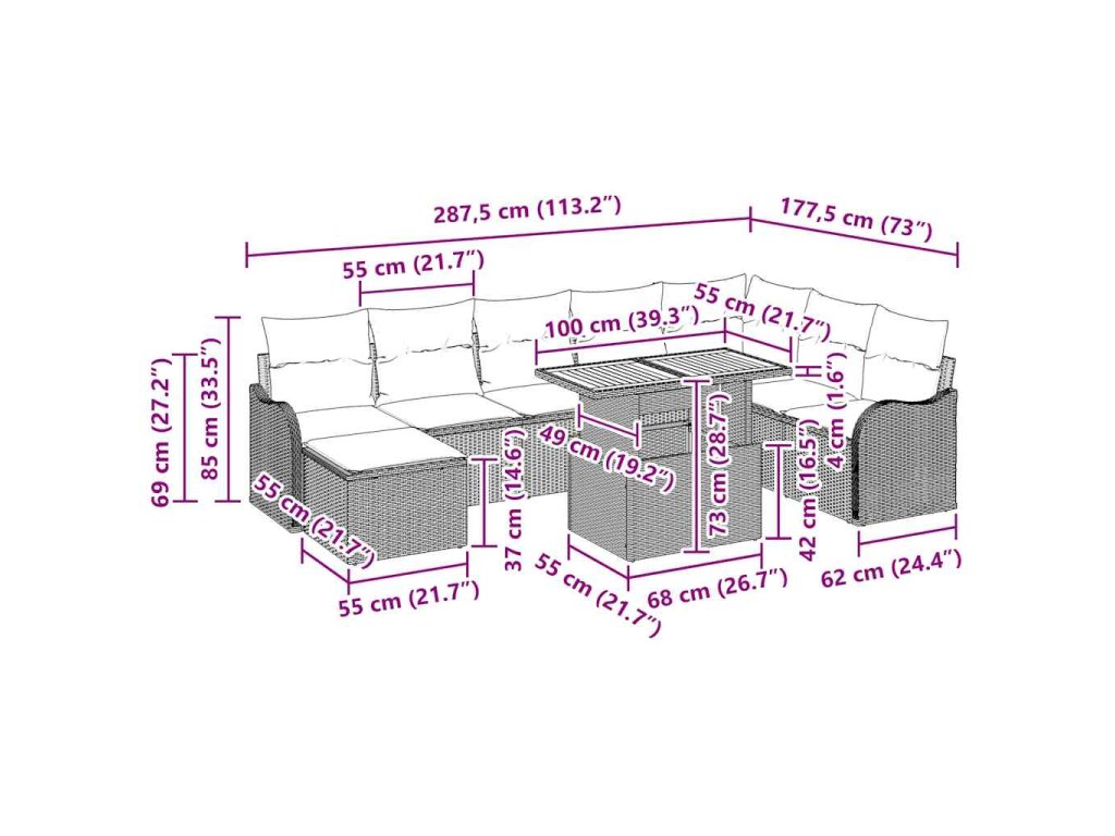 Sada zahradních pohovek s úložištěm 9 pcs Béžová Poly ratan