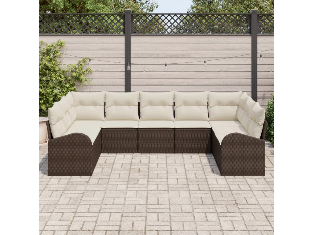 Sada zahradních pohovek 9 pcs Hnědá a bílá Poly ratan