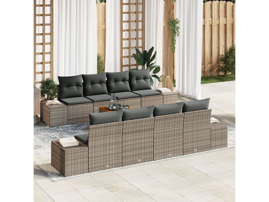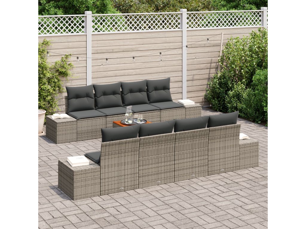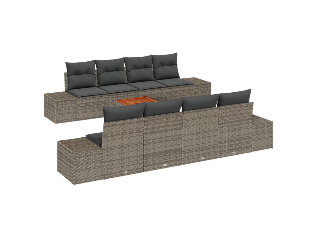 Sada zahradních pohovek s polštářem 9 pcs Šedá Poly ratan