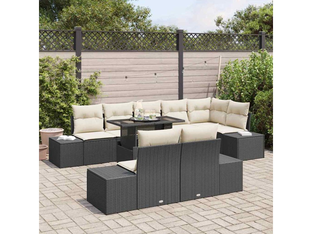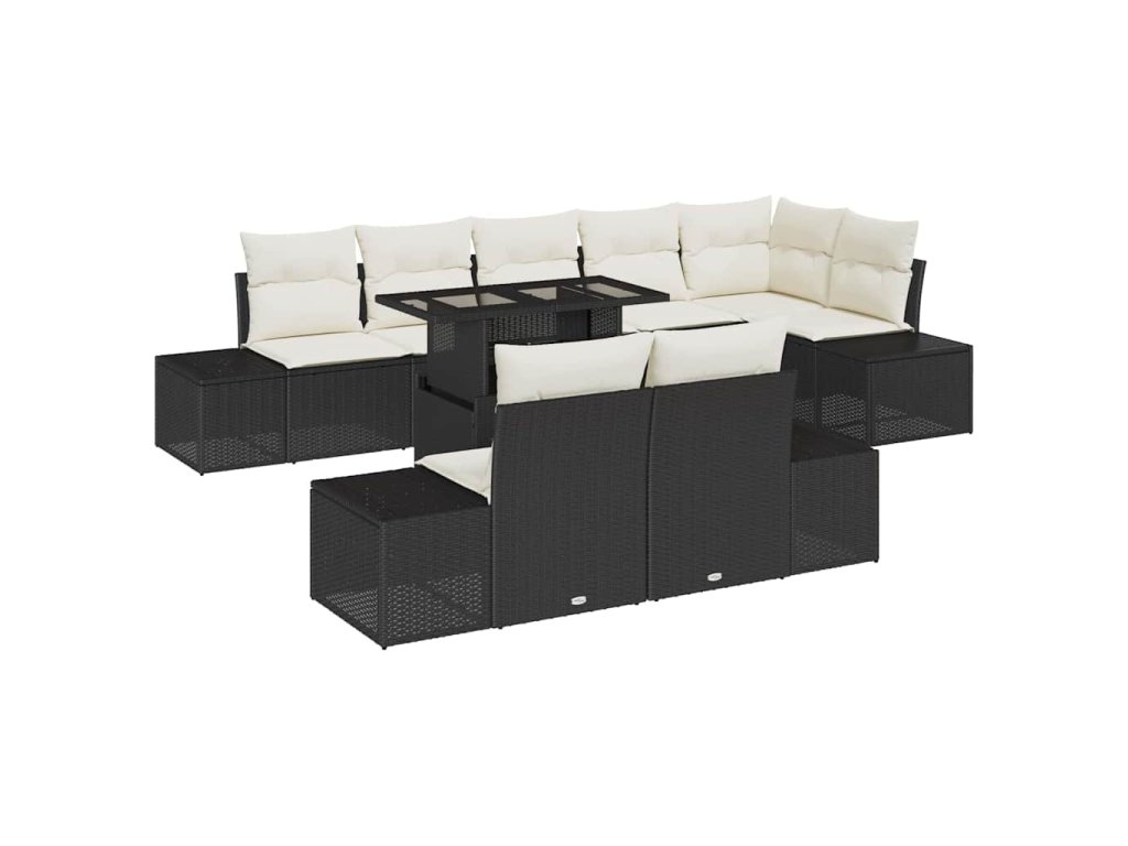 Sada zahradních pohovek s úložištěm 9 pcs Černá Poly ratan