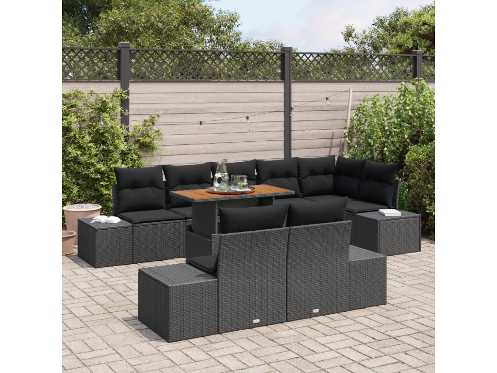 Tato moderní sada zahradního nábytku z polyratanu spojuje štíhlý, současný styl s neuvěřitelnou všestranností, navržena tak, aby zvyšovala jak estetiku, tak funkčnost v jakékoli zahradě nebo terase. Sada se pyšní ručně tkaným povrchem z polyratanu pro šik a robustní vzhled, doplněným masivními akáciovými dřevěnými plochami pro odolný a vizuálně atraktivní zážitek. Díky modulárnímu designu tato jídelní souprava umožňuje snadnou reorganizaci, nabízející nekonečné úpravy, které vyhovují shromážděním, intimním jídlům nebo odpočinkem s rodinou.