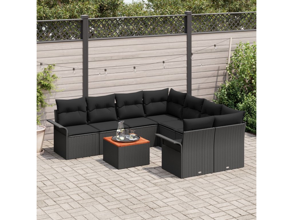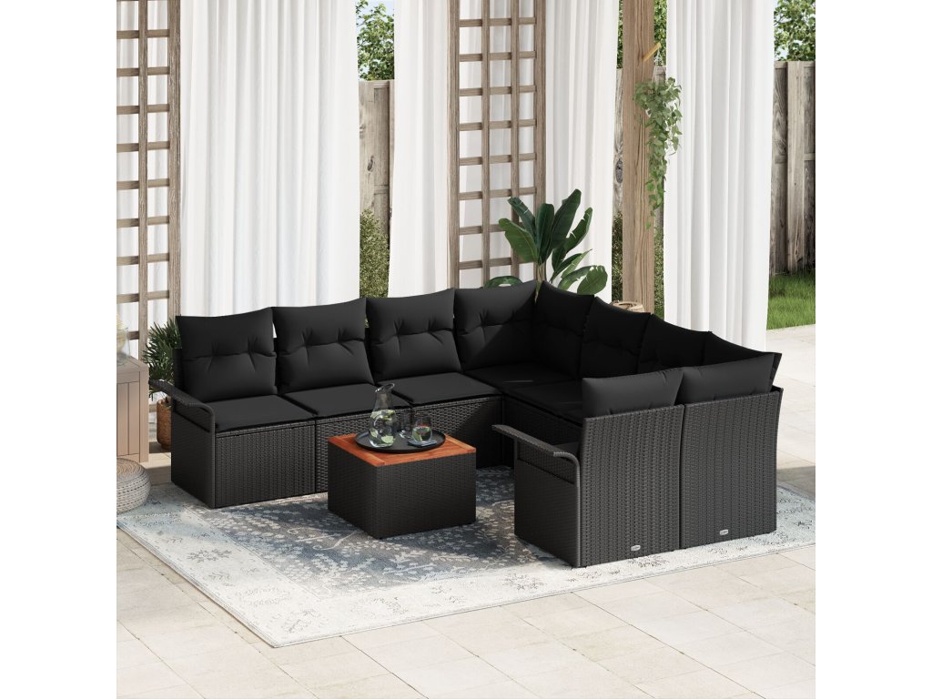 Sada zahradních pohovek 9 pcs Černá Poly ratan