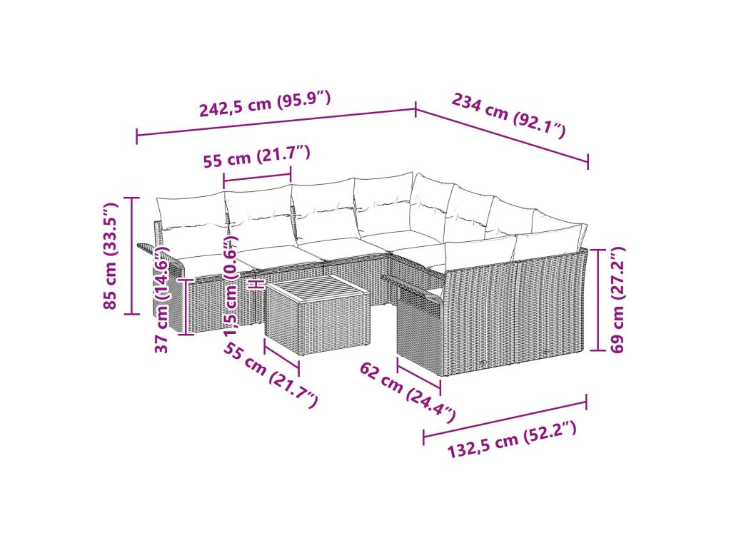 Poly Ratanová Konstrukce - Souprava je vyrobená z prvotřídního poly ratanu, což zajišťuje dlouhou životnost. Odolává UV záření, vlhkosti a opotřebení, takže je skvělá do venkovního prostředí. Její moderní tkaný design vypadá skvěle a snadno se udržuje. Uvidíte, jak skvěle odolává živlům a jak zlepšuje vzhled vaší zahrady. Praktické Úložné Možnosti - Každý díl (centrální sedák, rohový sedák a křeslo) má vestavěné úložiště. Nabízí skvělé místo na polštáře, zahradní nářadí nebo další drobnosti, takže váš prostor bude vždy v pohodě. Perfektní pro rychlé uskladnění dek, polštářů nebo knížek na chvíle venku. Komplexní Sedací Souprava - Tato souprava obsahuje čtyři centrální sedáky, dva rohové sedáky, dvě křesla a stůl, takže máte vše potřebné pro různé akce. Lze ji snadno přestavět pro jakoukoli velikost oslavy, takže si každý najde místo na pohodlné sezení. Design Zaměřený na Uživatelé - Modulární design znamená, že souprava se přizpůsobí vašim potřebám. Ať už hledáte útulné místo na čtení nebo relaxaci po dlouhém dni, tento design je super flexibilní a ideální pro aktivní venkovní život. Údržba a Péče - O soupravu se snadno staráte – stačí ji otřít suchým hadříkem. Bude vypadat skvěle po celý rok. Použití ochranných obalů v nepříznivém počasí prodlužuje její životnost, což usnadňuje údržbu.- Barva: Černá