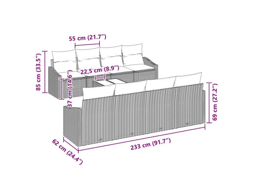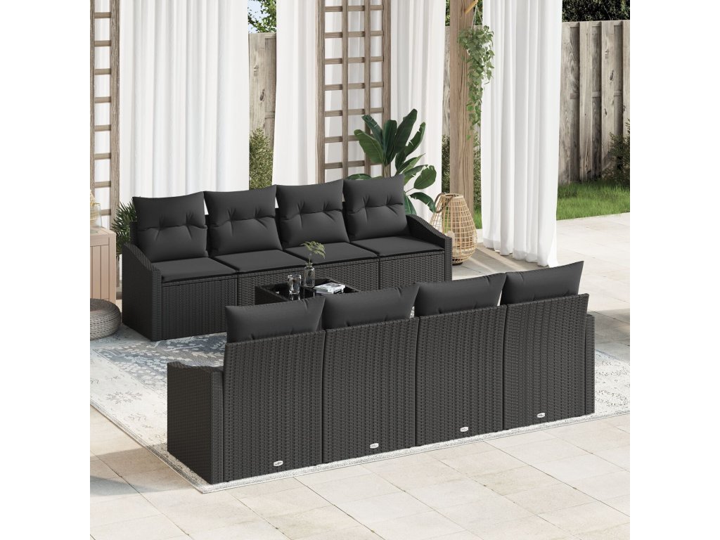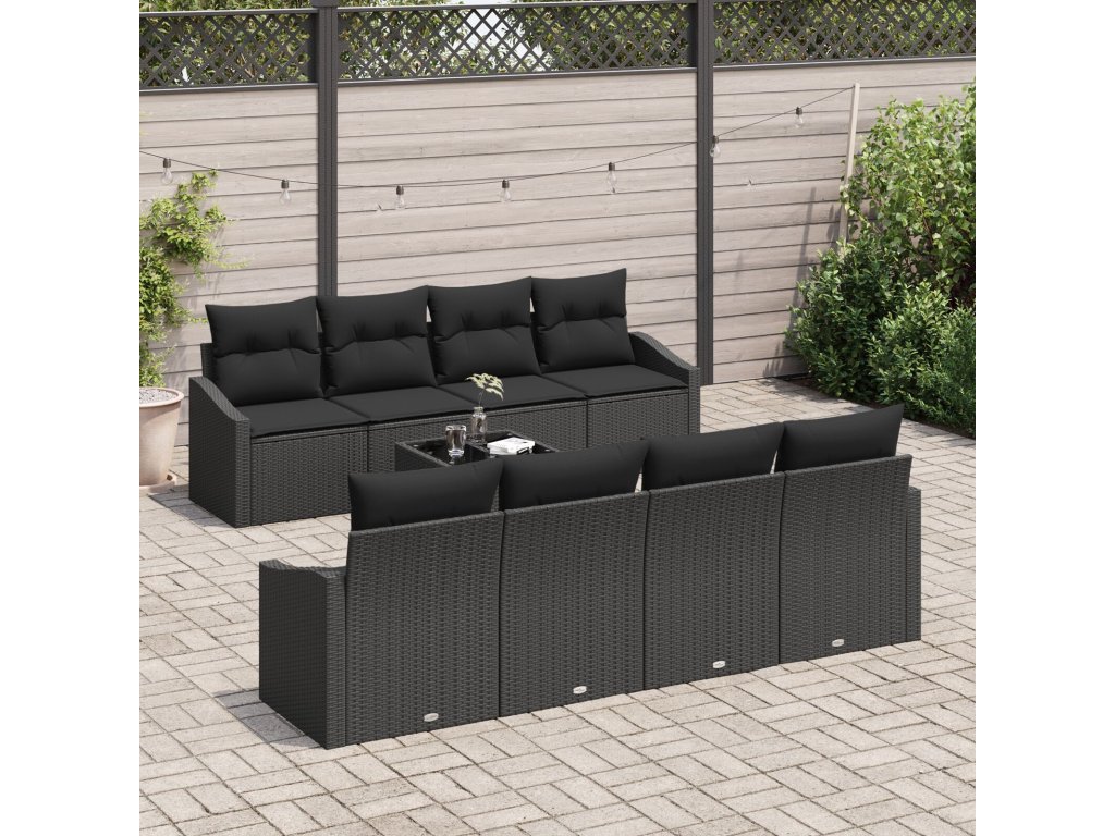 Set pohovek s polštářem s polštářem 9 pcs Černá polyratan