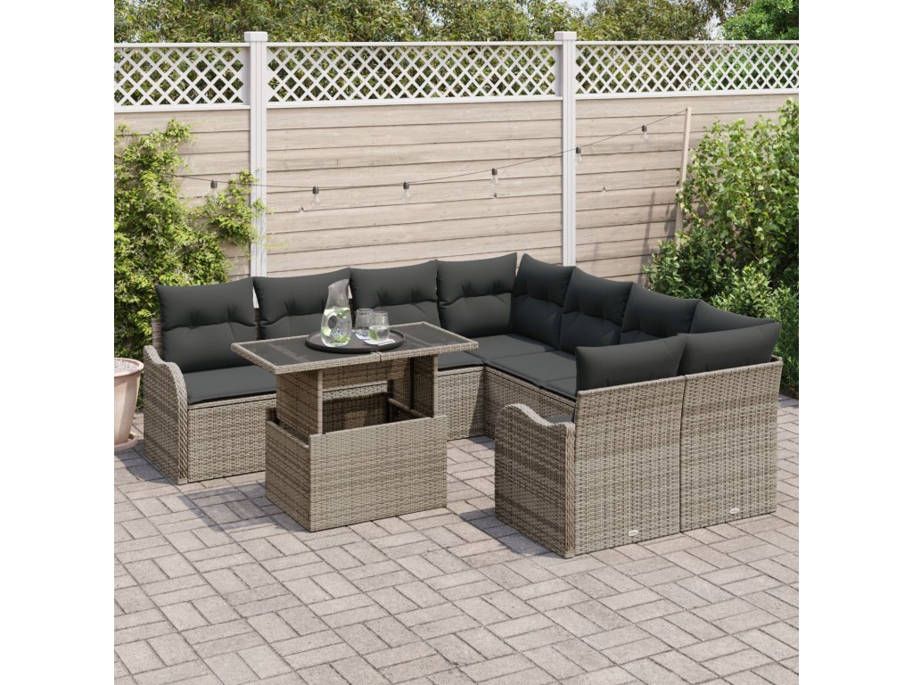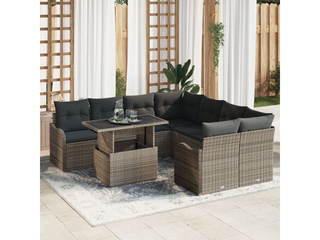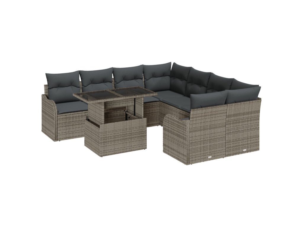 Sada zahradních pohovek s polštářem 9 pcs Šedá Poly ratan