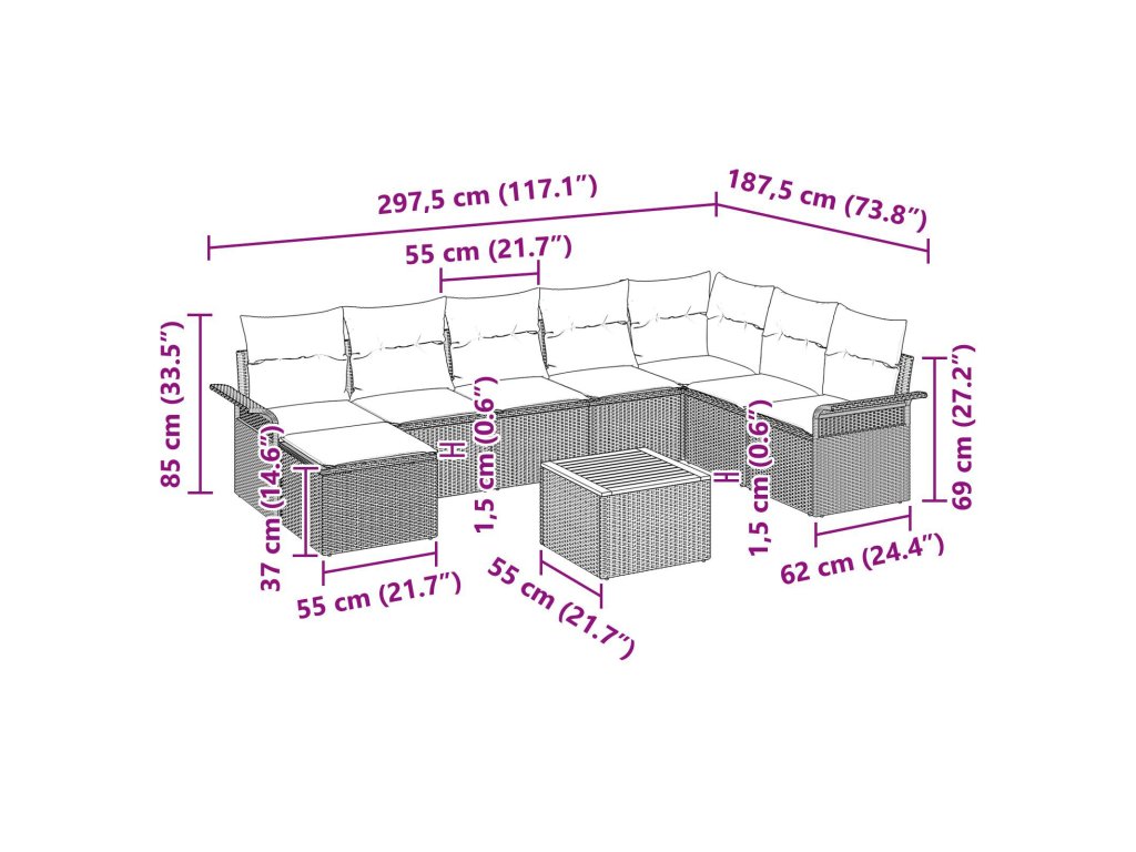 Sada zahradních pohovek 9 pcs Šedá Poly ratan